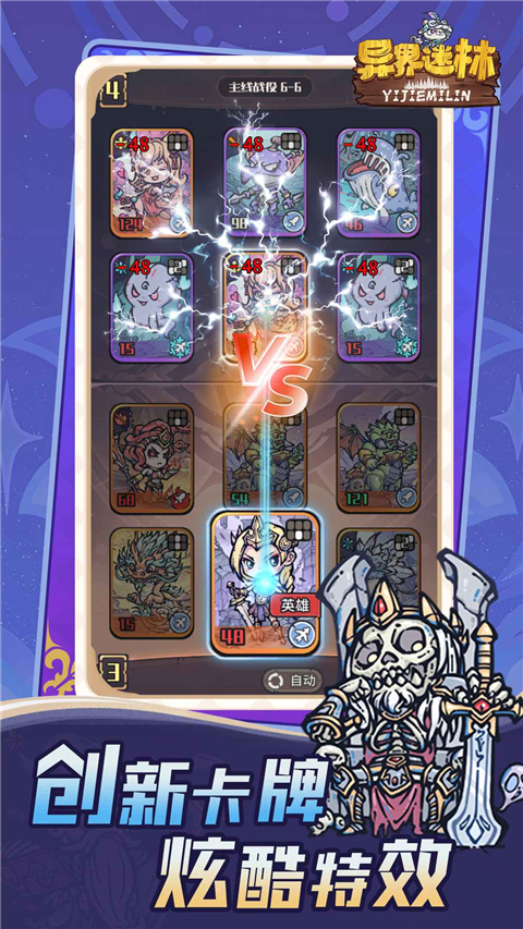 千张特色卡牌,来自不同阵营的传奇英雄齐聚一堂,自由组合,策略无穷! 没有最强的单卡,只有最妙的搭配!研究卡牌特性,发掘隐藏连携,构筑专属于您的战术流派——是快攻抢血,是控制消耗,还是斩杀终结?万般变化皆由你定,你就是最强的卡组构筑师!