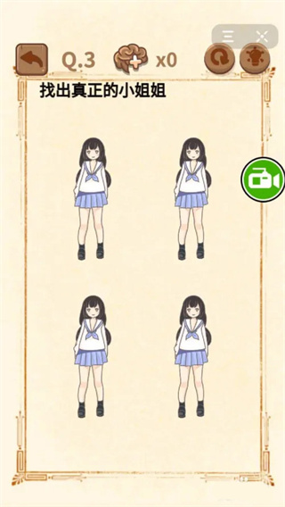 第3关,将手机倒立3秒钟,第一个是小姐姐,如图所示。