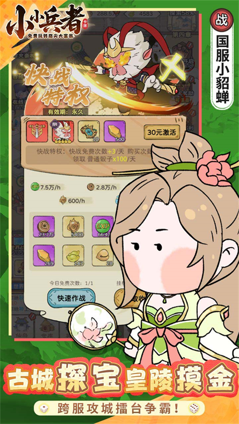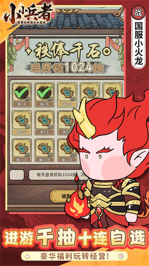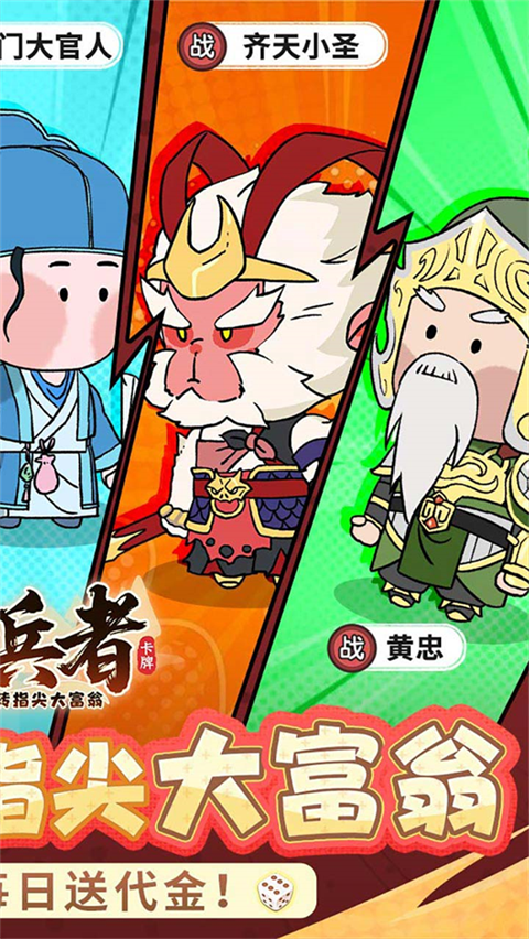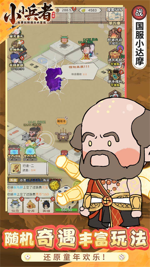 小小兵者官方正版是一款结合大富翁玩法与三国题材的放置休闲卡牌游戏。游戏中,玩家将通过投骰子控制角色前进,途中可能遇到捐款或土匪打劫等随机事件,战胜可获得金钱奖励,战败则会损失金钱,深度融合大富翁卡牌机制。此外,小小兵者手游还引入了诸葛亮、刘伯温、宋江等跨时代角色,玩家可收集并组建强大阵营,挑战副本、参与擂台PK,还能登上排行榜展示自己的成就。