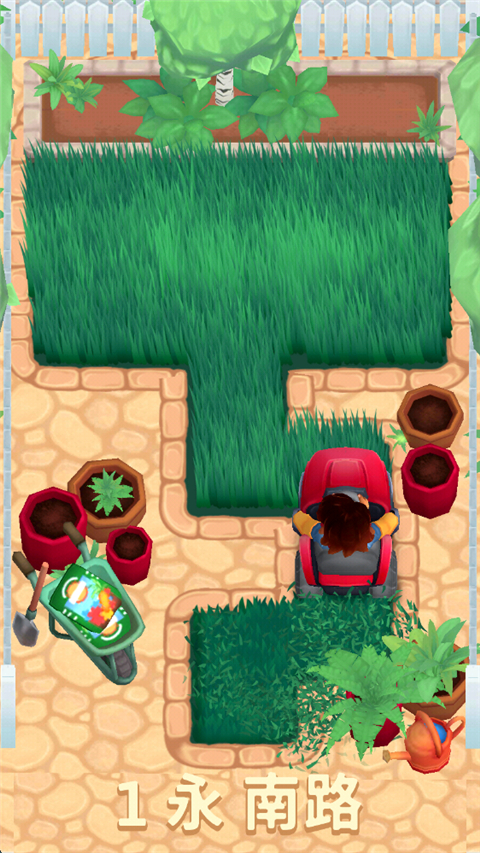 3、玩家的目的是处理里面的全部草,解锁其它街道;