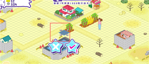将它放置在空地(农田显示红色则此处不能安放),点击√。