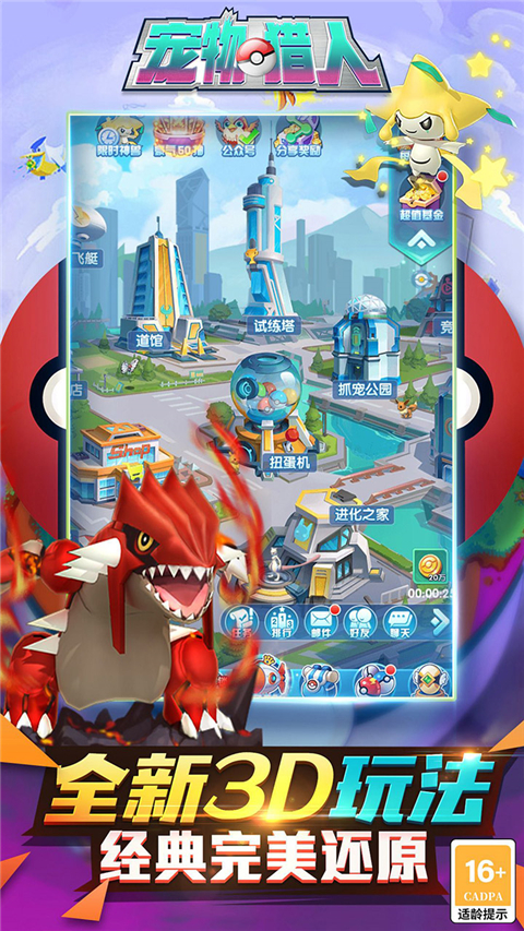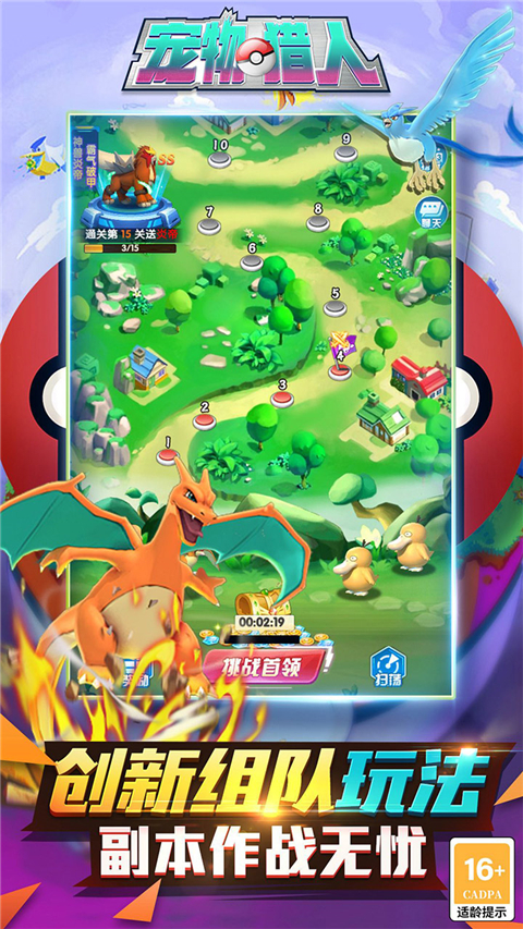 宠物猎人0.05折版是一款精灵放置挂机卡牌手游。在这里玩家扮演训练师,通过招募盖欧卡、超级暴鲤龙、水君、凯路迪欧、小火龙等熟悉精灵组队进行战斗,挑战关卡获取资源奖励培养提升它们的基础属性,每一只精灵玩家都可以对其进化,进化后可解锁全新的形态以及技能属性,体验自己的精灵养成之路。另外,游戏中除了章节关卡玩法外,还提供试练塔、道馆、竞技场、抓宠公园及多种副本内容,参加竞技场挑战,挑战提升排名,还有丰厚的赛季奖励哦。