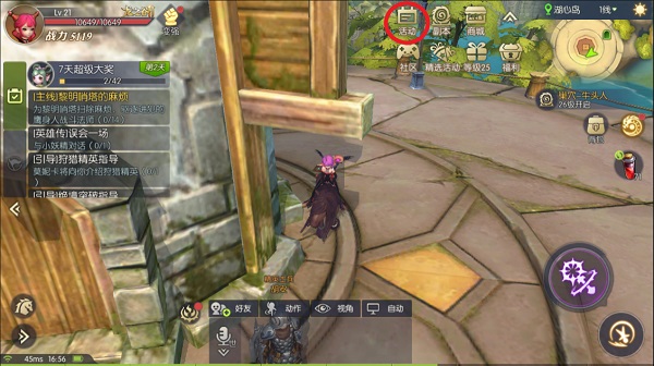 第一种方法是可以获得大量经验值的最简单的方法,点击右上角的“活动”,选择“学者课堂“,不管你答对或者答错,只要冒险家参与这个活动,都可以获得大量经验,答题界面左边的宝箱也会随这你答对题目的数量进行升级,玩家结束答题结束后获得相应的宝箱奖励。
