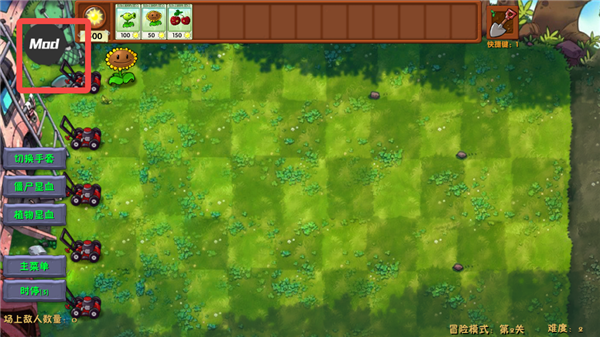 1、进入游戏关卡内,点击左上角【MOD】图标。