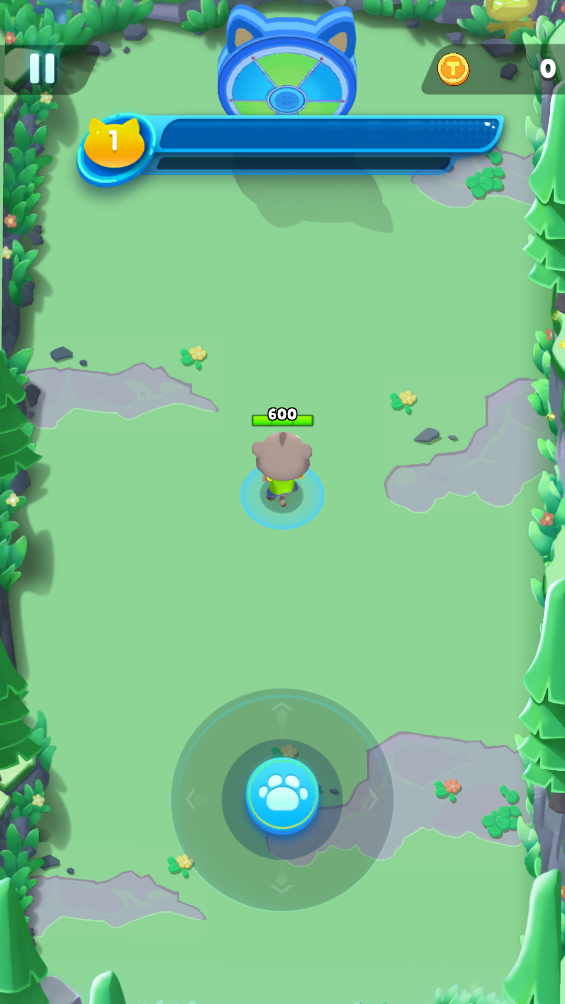 2、点击屏幕中任何地方都能触发猫爪模型的摇杆,只需要控制猫爪躲避攻击就能生存下去了。
