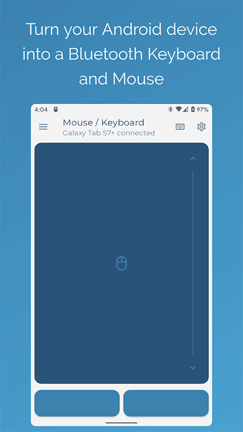 Bluetooth Keyboard & Mouse pro(蓝牙键盘和鼠标专业版)是一款高效实用的移动工具,它能够将您的智能手机或平板电脑即刻转变为一台功能完备的无线键盘和鼠标,用于远程控制支持蓝牙人机接口设备规范的各类设备,包括个人电脑、智能电视和媒体播放器等。Bluetooth Keyboard & Mouse pro具有强大的跨平台兼容性,并在键盘模式下提供全功能软键盘,支持所有标准键和功能键(如Ctrl、Alt),满足复杂的输入需求。在鼠标模式下,您的手机屏幕则可作为高精度触控板使用,支持光标移动、滚动和手势操作,实现精准的远程界面控制,有需要的用户可以在本站免费下载使用。