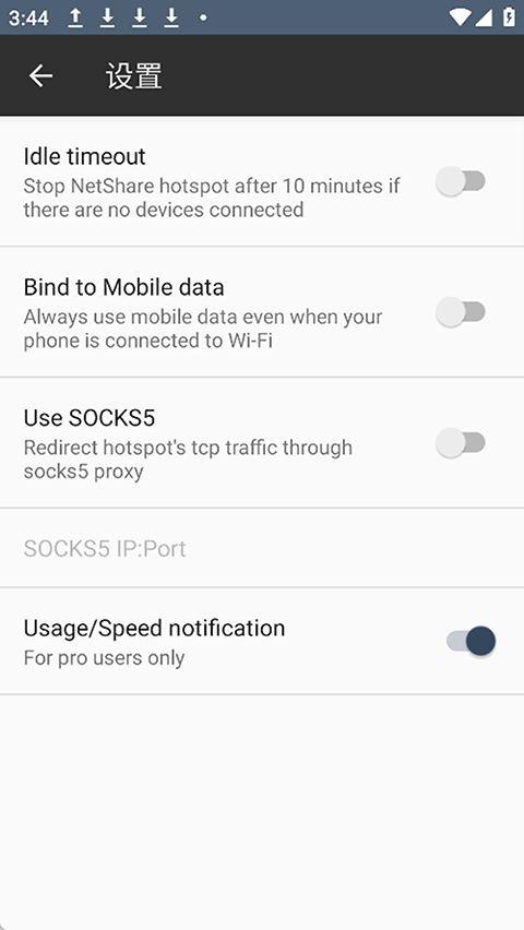 NetShare是一款功能强大的网络共享工具,它利用Wi-Fi Direct技术,允许用户将手机或平板电脑上的互联网连接(包括Wi-Fi和移动数据)共享给其他设备。它的核心价值在于能够有效 绕过 许多移动运营商对传统内置 Wi-Fi 热点功能的限制,解决了用户套餐禁用热点时无法分享网络的问题。要连接到NetShare创建的网络,接收端设备(如其他手机、平板或笔记本电脑)需要在连接Wi-Fi后,手动设置HTTP/Socks 代理来完成网络桥接。这种独特的工作方式使其成为旅行者和需要同时让多台设备上网用户的理想选择,尤其适用于酒店、机场或其他网络受限的环境,有需要的用户可以在本站免费下载使用,本站所提供的是NetSharepro解锁版。