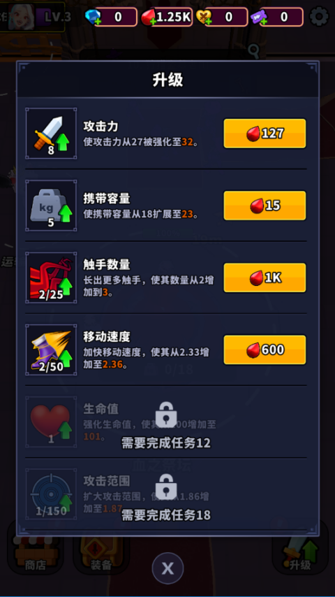 新手可以通过完成任务快速上手,任务不仅能提供大量资源,还能帮助解锁更多玩法。通过吸食人类的血液可以升级自己的属性,击败特色怪物还能获得钥匙抽取装备,及时穿戴装备能显著提升战斗力。