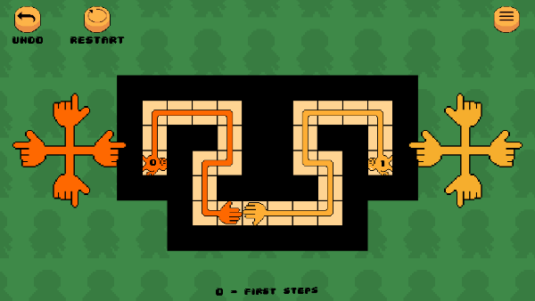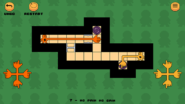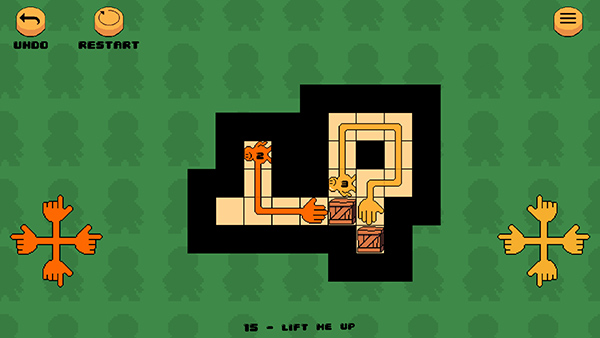 2、左右两边的是控制方块中手的移动方向的,按一下就移动一格,方块里的有两个手,每个手都规定写了步数,你需要在这规定的步数中把两只手握在一起。
