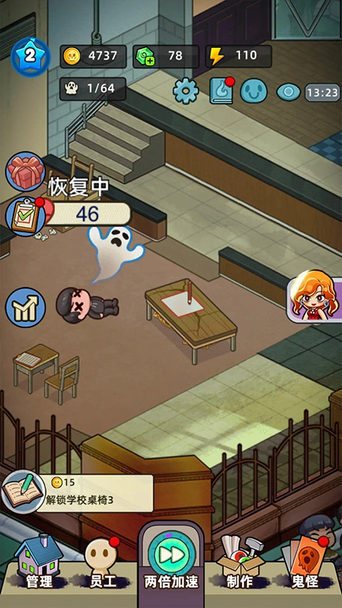 3、挑战性任务:游戏中提供丰富多样的任务,从吓唬特定客人到解锁新的鬼怪道具,挑战玩家的管理和推理能力。
