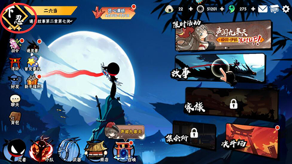 2、接下来回到游戏主界面,我们在左上角的忍者级别