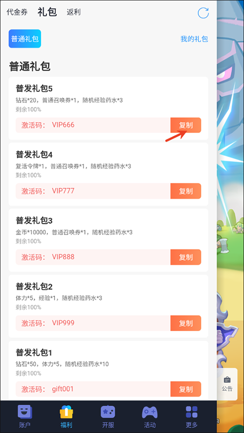 2、然后在这里选择领取兑换码。
