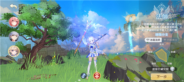 3、进入游戏之后选择角色、输入角色名称、选择性别,点击“下一步”,不过这边角色分为“弓手”、“战士”、“法师”。
