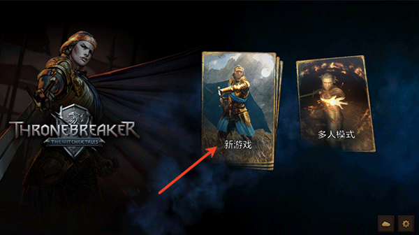 1、在本站下载安装巫师之昆特牌王权的陨落游戏,运行游戏并点击新游戏;