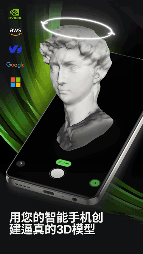 应用内置的**AI算法**和强大的**云计算能力**能自动处理照片,识别物体的几何结构和纹理,并在几分钟内生成3D模型。