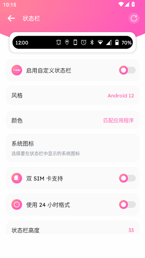 4、状态栏高度调节:支持根据屏幕比例和视觉习惯调整状态栏高度