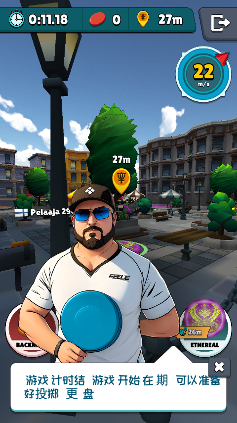 2、游戏中有个裁判会告诉 你规则,左上角有计时器,你需要在这个时间内准备好飞盘投掷。