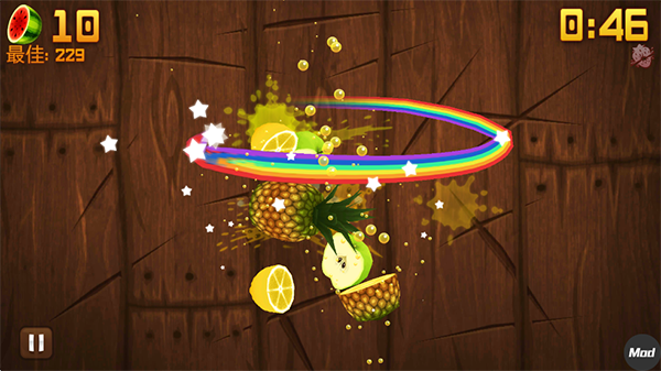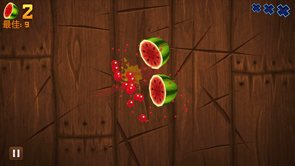 6、不一定出现水果就去切,可以让水果飞一会,与其他水果相汇或者成直线时进行一次性切割,combo的几率更大