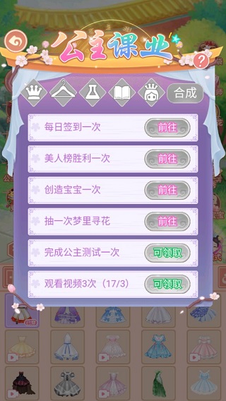 1、集齐皇冠、衣架、拉链、书本、皇上卡片,可随机获得公主套装。