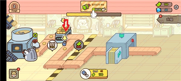 1、首先下载安装仓鼠饼干工厂中文版,打开进入到游戏当中点击图中机器设备开始生产饼干。