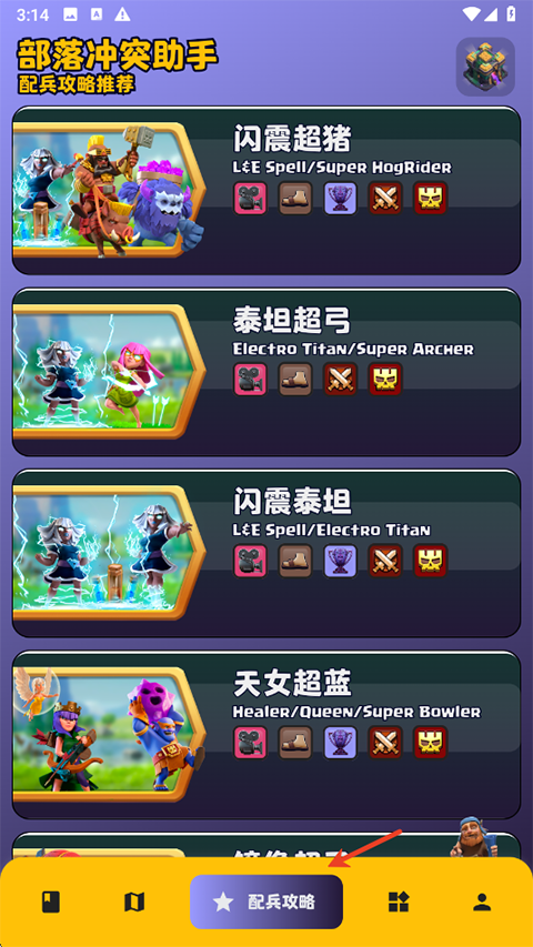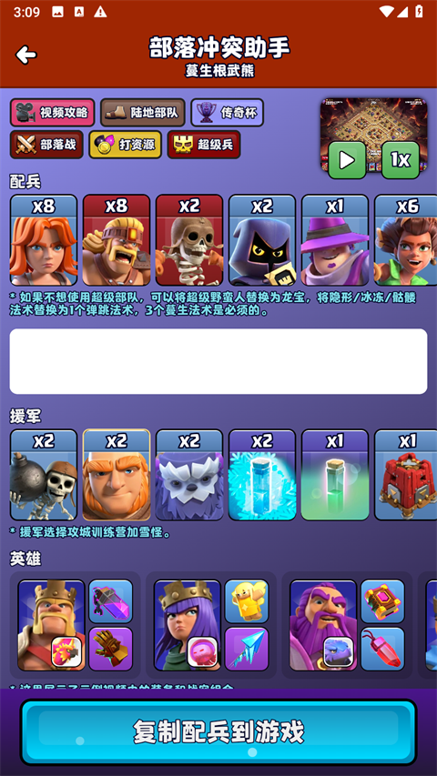 4、同时游戏内还有热门的配兵攻略,玩家可以参与上面的内容来对自己的部落进行调整。