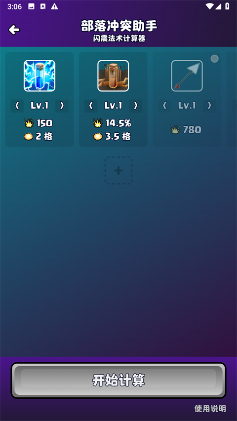 3、功能界面的闪震计算器能够精准计算法术搭配效果,一键获取最优法术组合(如闪电法术与地震法术的协同使用)。