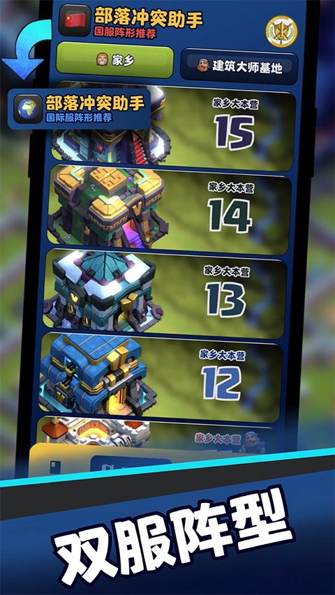 1、双服同步!我们精挑细选了近两千个国服、国际服阵形,并手动制作了该阵形在另一服务器的阵形链接!护资源、冲杯、部落战、创意、升级阵形应有尽有!
