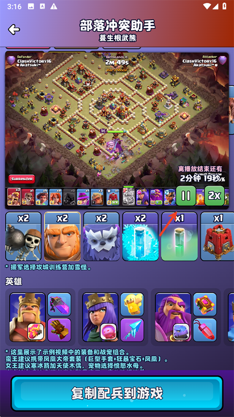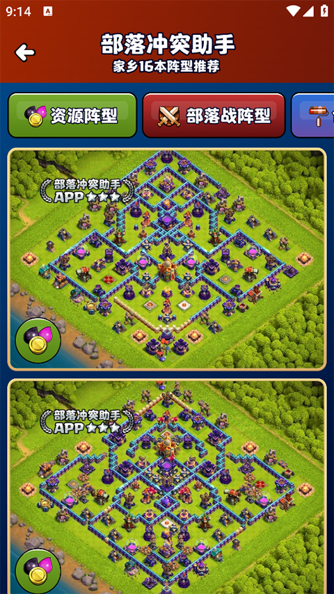2、提供近2000个国服和国际服的阵型,涵盖资源保护、冲杯、部落战、创意等多种类型,满足不同场景需求。