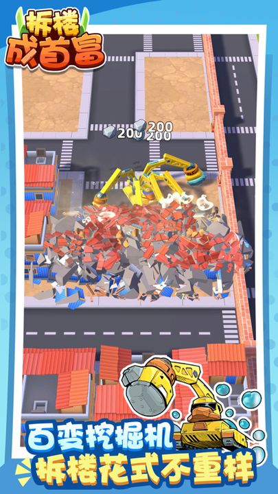 拆楼一时爽,一直拆楼一直爽!本期小编要为你推荐的这款拆楼成首富,是一款十分解压的休闲模拟器游戏,游戏中通过滑动屏幕靠近违建,拆楼挖掘机便可自动工作。