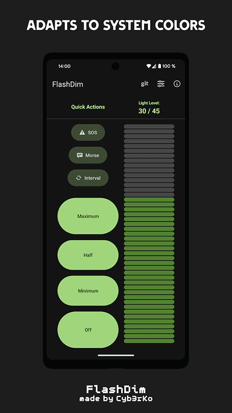 FlashDim 是一款很实用的手机工具应用,专门用来调节手机闪光灯亮度。它最大的特点就是比系统自带的手电筒功能强大很多,不仅有开关模式,还能通过滑块精确调整亮度,从微弱到最强都能轻松控制。我觉得这个设计挺贴心的,因为在晚上看地图或者找东西的时候,用低亮度既不会刺眼也不会打扰别人。