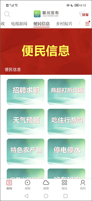 目前软件注重于宣传政府的重要信息,让群众深入了解国家政策,同时为用户提供有各种时政新闻、电视新闻和各种便民信息,其中在视频当中,用户可以在这里更加直观的观看新闻报道在融媒当中,用户可以以传统的方式对新闻进行了解;为了让广大用户群体更加方便,软件还在便民功能中提供有各种便民服务,有需要就快来下载使用吧!