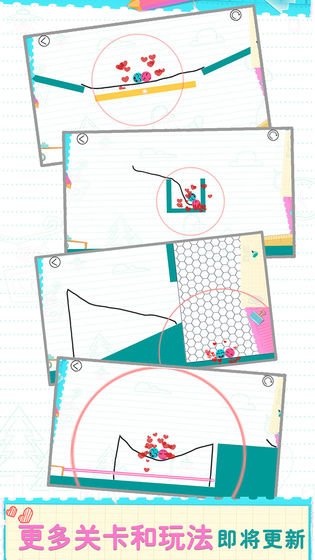 恋爱球球安卓版是一款画风简约、玩法轻松有趣的益智闯关游戏,英文名叫做Love Balls。游戏的核心玩法是通过简单地画线让两个小球碰撞,擦出“恋爱火花”。听起来有点浪漫吧?操作很简单,就是在游戏界面画几条线,引导小球移动,避免它们撞到墙壁或者掉下去。不过要三星通关还得注意连线的长度和角度。
