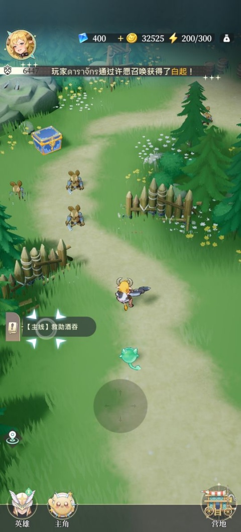 1、跟着主线任务进行,移动按钮控制人物。