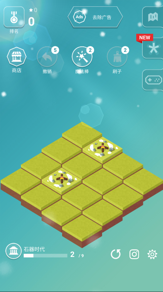 滑动方块、合并消除这些经典的玩法还在,但游戏里还加入了许多有意思的功能,比如“撤销”能回到上一步,“魔法棒”可以升级建筑,“刷子”还能清理低级建筑。这些小功能让 gameplay 更加灵活了。