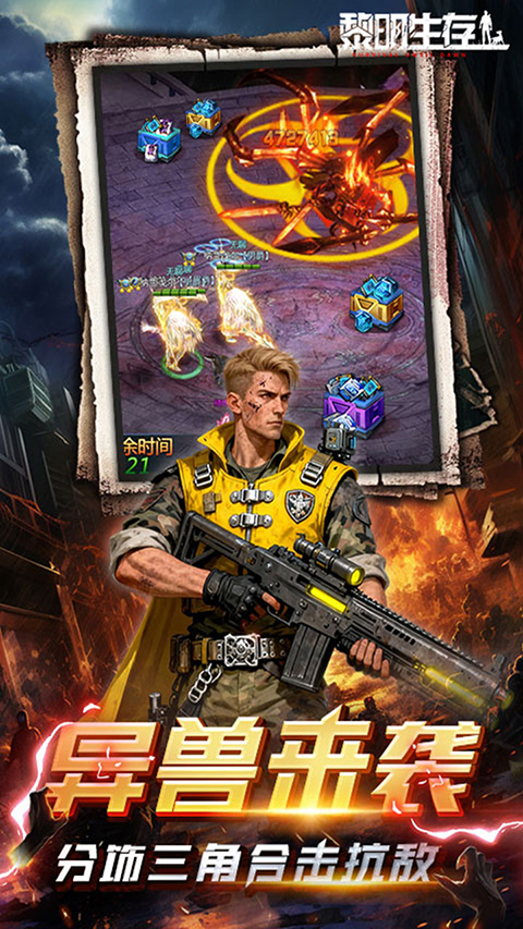 《黎明生存》是一款以末日废土为背景的战争RPG手游,讲述地球被辐射污染后,幸存者与变异怪物抗争的故事。游戏提供三种职业:机枪师(远程高爆发)、狂斗士(近战肉盾)和医猎者(远程治疗),玩家可以通过探索、战斗和营地建设来重建文明秩序。游戏内有丰富的养成系统,包括装备、技能、伙伴和宠物等,同时还有社交属性,可以建立家族和召集好友共同讨伐怪物。