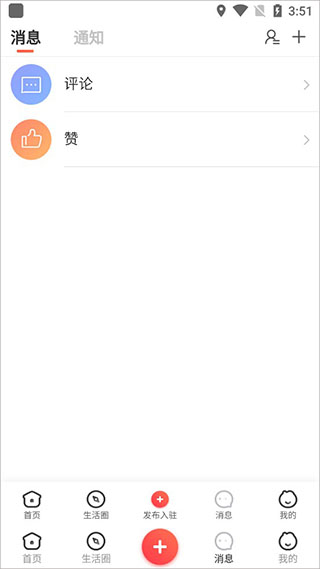 6、切换到消息这里,这里我们可以查看有关自己的点赞和评论,或者加好友。