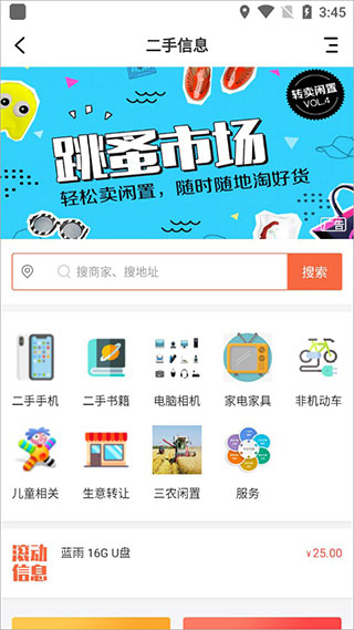 2、点击二手信息,我们可以按照搜索商家或者地址,搜索你需要的二手货品;