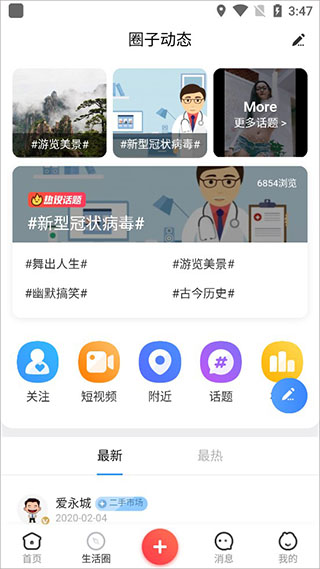 3、在生活圈内,我们可以查看附近的最新消息和最热门话题;