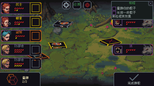 3、接着玩家需通过掷骰子来对5名英雄进行控制,你可以让他们进行攻击或者防御;