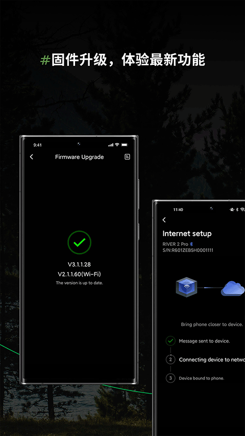3、设备若连接了家庭Wi-Fi,配网即可远程控制您的设备,或进行固件升级以获取最新功能。户外露营?尝试使用蓝牙或将设备用作热点,即使没有网络连接也能实现控制。