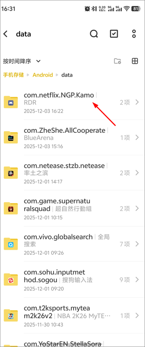 3、再找到com.netflix.NGP.Kamo文件夹;