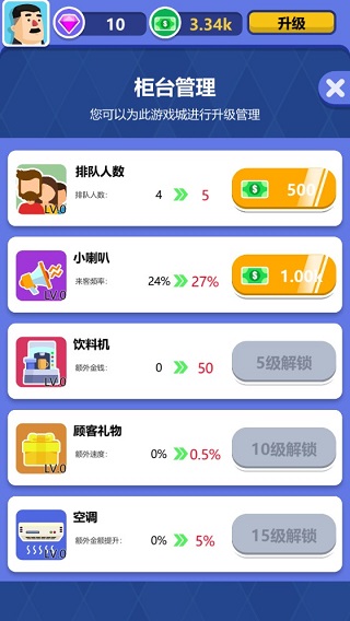 1、学习更多的经营方法来经营你的娱乐游戏厅,帮助你的游戏厅蓬勃发展。