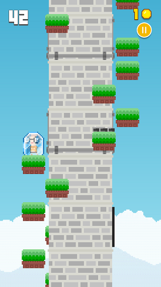 游戏中还有各种小道具小阻碍,比如冷气,冷气可以冰冻住玩家,玩家需要多操作一次才能解开冰冻;然后还有时空器,可以向上穿越一段距离;有冷气自然也有火焰啦,火焰每隔一段时间会开始喷射,玩家要在它熄灭的时候赶紧抓住机会往上跳哦!