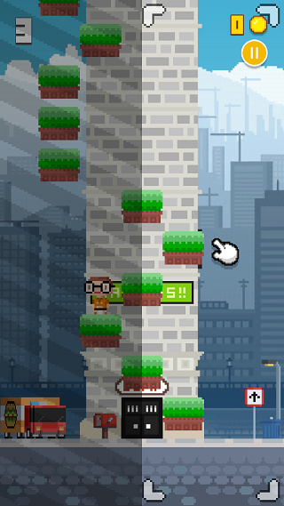 正交跳跃是一款非常考验玩家脑力和思维能力的休闲类小游戏,该游戏的玩法与同类型的游戏操作,有着相对的不一样,在这里你需要控制角色的移动,不断向上攀爬,同时还要不停的左右滑动控制视角转换,好依靠视觉错觉向上攀爬,但请注意,在攀爬的过程中也有相当多的陷阱和机关会成为你前进中的障碍。期间为增加游戏的多重体验,这里有着丰富的游戏场景可供玩家选择和挑战,城市、森铃、圣诞节、地牢等,不同的场景,不同的挑战难度,都也为你增加了不少的欢乐值,而且丰富的像素风角色,也在等待着你的收集哦,与之同等存在的还有人物的养成升级,增加金币、时间和攀爬的移动速度,可以更好的完成关卡挑战哦!