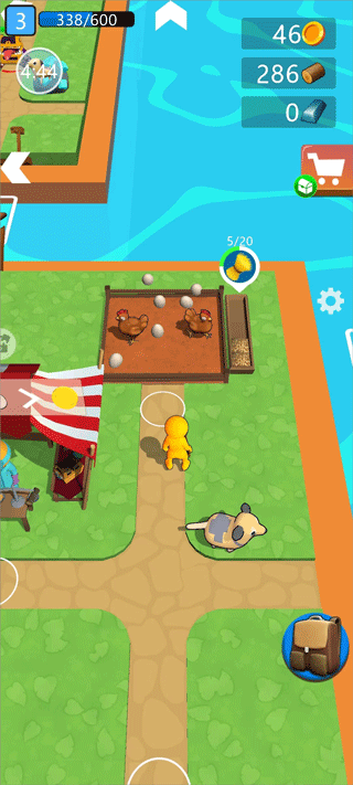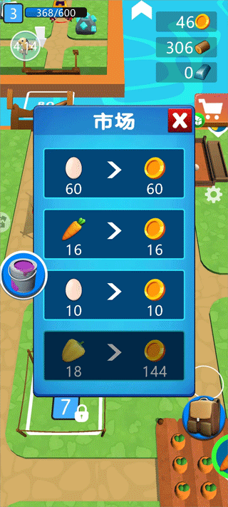 游戏里的金币获取方式也有很多种,比如伐木后搭建小鸡舍收鸡蛋,或者种植蔬菜去市场卖钱。另外,游戏里还可以雇佣工人、养宠物,让整个海岛变得更热闹。我觉得这款游戏最大的亮点就是自由度高,玩家可以根据自己的喜好选择不同的玩法来建设自己的小岛。