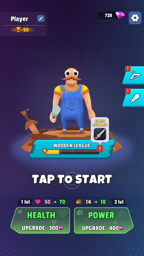 2、胜利后可以获得一定数量的钻石,通过钻石可以升级攻击威力与生命值,“POWER”代表的是攻击力,“HEALTH”代表的是生命值,也就是常说的血量。