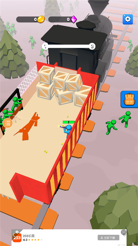 游戏的玩法也非常的简单,玩家需要驾驶自己的火车来去进行前行,行驶期间会有很多的僵尸会围攻你的列车,而玩家只需要灵活的躲避爬上列车的僵尸,你手中的武器会自动射击僵尸。而且,随着不断的猎杀僵尸,玩家还可以升级扩大自己列车车厢,然后建造不同的工事来去武装自己的火车的,消灭更多的敌人。