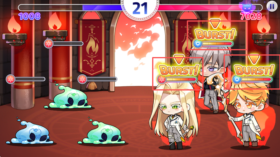 6、游戏还有独特的战斗系统,玩家需要等等自身怒气的积累,当积累完成后,点击对应角色就可以释放各自的强大技能,需要注意的是,玩家需要在有限时间内结束战斗。