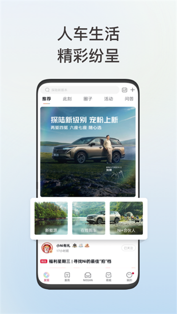 2.社区∣了解东风日产汽车品牌资讯,交流用车体验,分享精彩人车生活。