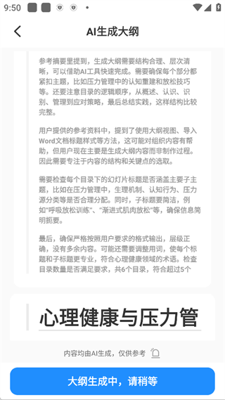 大纲与内容生成:输入主题或上传Word文档,AI自动生成逻辑清晰的大纲及内容文本,支持“换大纲”功能调整结构。